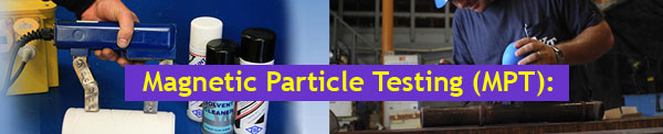 MPT is used to detect surface and subsurface discontinuities in ferro-magnetic materials such as iron, nickel, cobalt, and some of their alloys. The piece can be magnetized by direct or indirect magnetization. Direct magnetization occurs when the electric current is passed through the test object and a magnetic field is formed in the material. Indirect magnetization occurs when no electric current is passed through the test object, but a magnetic field is applied from an outside source. The magnetic lines of force are perpendicular to the direction of the electric current which may be either alternating current (AC) or some form of direct current (DC). Visible or fluorescent, and, wet or dry examination method can be used in field. Hot MPI can also be performed at elevated temperature using dry powder without cooling the work piece. Our technicians qualified to MT Level II work as per codes (PCN/PED/ASNT) in various industries like Oil and Gas; Petrochemicals; Pressure Vessel Manufacturing; Marine; Ship Repair; Dredging Companies; Mining Sector; Power distribution; Hotels and Hospitals.